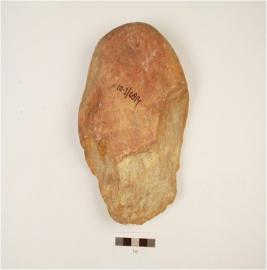 | Description / विवरण | A chopper made on quartzite pebble, flake scars on the interior end with wavy cutting edges, cortex on posterior end, convex in section. |