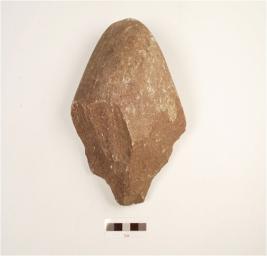 | Description / विवरण | A chopper made on quartzite pebble, flake scars on the interior end with wavy cutting edges cortex on posterior end convex in section. |