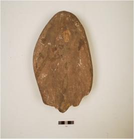 | Description / विवरण | A chopper made on quartzite pebble, flake scars on the interior end with wavy cutting edges, cortex on posterior end, convex in section. |