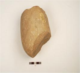 | Description / विवरण | A chopping tool made on a pebble, large flake scars at interior end, bifacial, cortex towards the butt end at posterior side, smooth surface cortex surface, plano convex section. |