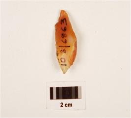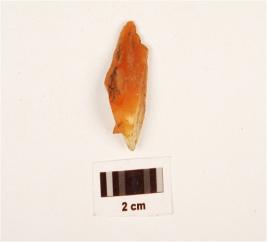| Description / विवरण | A side scraper made on chalcedony flake, smooth surface, flake scars visible on one side. |