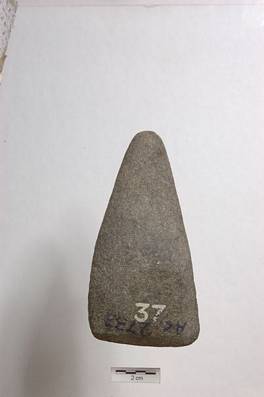 | Description / विवरण | Pear shape object with straight cutting edge and pointed butt end. Surface is comparatively smooth. |
