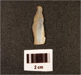 | Description / विवरण | A single ridged blade made on chalcedony flake, retouched along the edges, prepared paltform. |