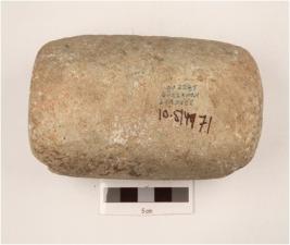 | Description / विवरण | Basalt pestle, hexagonal cross section, flat surface on one section end, pecking marks on another end, smooth surface. |