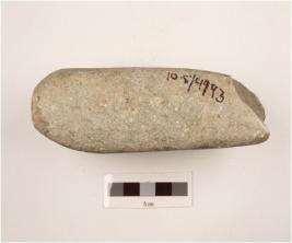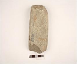 | Description / विवरण | Dolerite axe, working edge broken, butt damaged, rectangular cross section, both surface flat, polished surface. |
