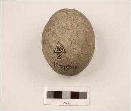 | Description / विवरण | Basalt hammer stone, spherical shape, rouhg surface, pecking marks on surface. |