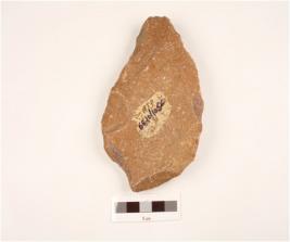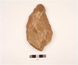 | Description / विवरण | A hand axe made on quartzite, end struck flake, uneven surface prepared platform at one side and other side is sharp. |
