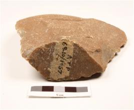 | Description / विवरण | A handmade side scrapper of quartizite, made side struck flake, by-facial and prepared platform on top. |