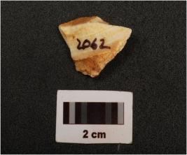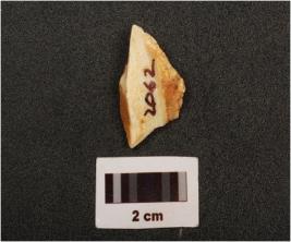 | Description / विवरण | A chert trapzoid with flake scars bands and cortex on surface, cream in colour. |