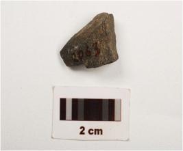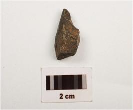 | Description / विवरण | A basalt stone flake with flake scars and smooth surface, prepared platform and bulb on ventral. |