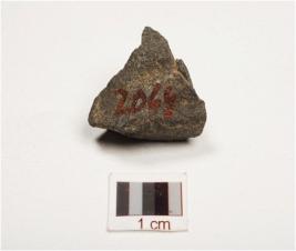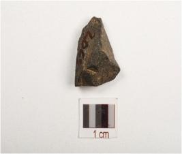 | Description / विवरण | A basalt stone flake with flake scars and smooth surface. |