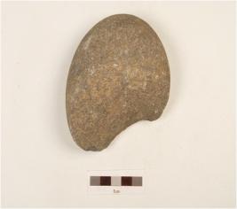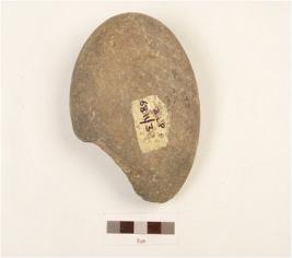 | Description / विवरण | A chopper made on quartzite pebble butt end, oval section, cortex is visible. |