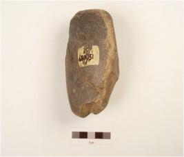 | Description / विवरण | Core made on quartzite pebble, one side seven flake scars, plano convex section. |