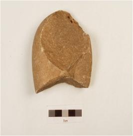 | Description / विवरण | An unfinished object made on quartzite pebble butt end, flake scars on one side, smooth surface, visible cortex, oval section. |