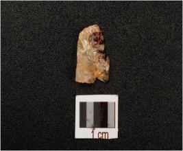 | Description / विवरण | A quartz end struck flake with smooth surface and use-wear marks. |