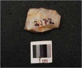 | Description / विवरण | A quartz flake with a ridge on surface, prepared platform, diffused bulb on ventral and use-wear marks on edges. |