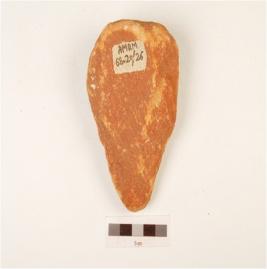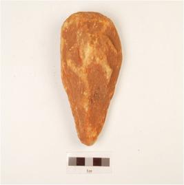 | Description / विवरण | A hand axe made on quartzite side struck flake, flake scars on surface, use wear edges, chipped off, made on cortex, plano convex in section. |