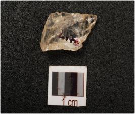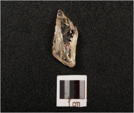 | Description / विवरण | Fragment of quartz blade with double ridges on dorsal, ripple marks on ventral, use-wear marks on cutting edges and translucent. |