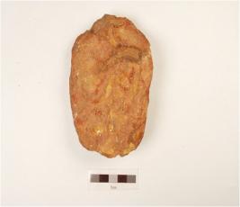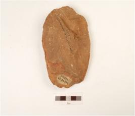 | Description / विवरण | A hand axe made on quartzite pebble, small flake scars on both sides, biconvex section. |