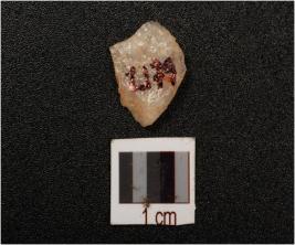 | Description / विवरण | A quartz flake with smooth surface and use-wear marks on one edge. |
