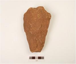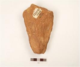 | Description / विवरण | A bifacial handaxe, made on quartzite pebble with flake scars on both side, cortex on dorsal, broken distal end and sharp working edge, triangular in section. |