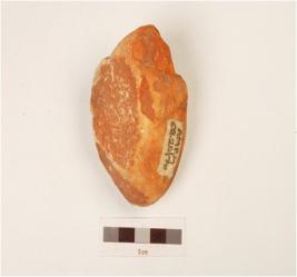 | Description / विवरण | A chopping made on sandstone pebble, flake scars on both sides, convex on dorsal and use wear marks on working edge, triangular in section. |