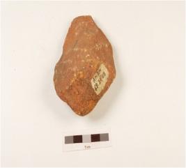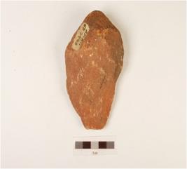| Description / विवरण | A hand axe made on quartzite side struck flake, use wear cutting edges, broken pointed end, flake scars on surface, plano convex in section. |