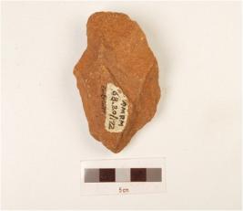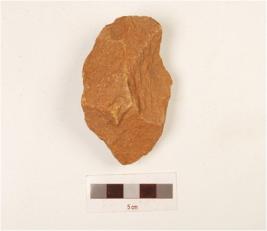 | Description / विवरण | A bifacial miniature handaxe made on quartzite pebble with flake scars on both side and wavy woking edge, cortex on surface. |