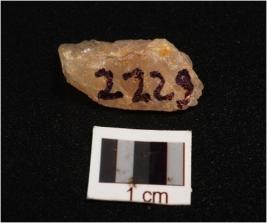 | Description / विवरण | Side scraper made on quartz with sharp working edge, broken at distal end, use ware marks along the cutting edge, bulb absent, |