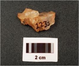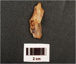 | Description / विवरण | Flake made on quartz, bulb absent, use ware marks along the cutting edge, flake scars marks visible on surface, |