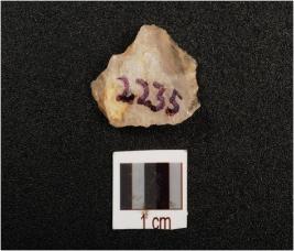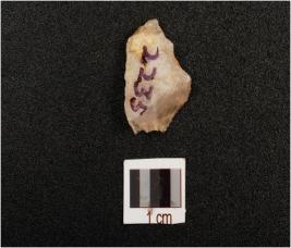 | Description / विवरण | Side scraper made on quartz with sharp working edge, use ware marks along the working edge, flake scars marks visible on surface bulb absent, |