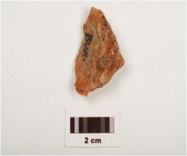 | Description / विवरण | Quartz flake with prepared platform diffused bulb on ventral side, use wear mark along cutting edges, |