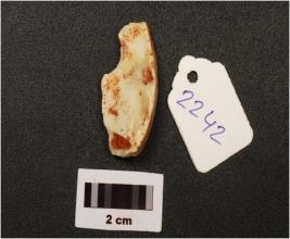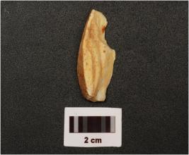 | Description / विवरण | Quartz flake, prepared platform, diffused bulb on ventral side, ridge, use wearmark along cutting edges, |