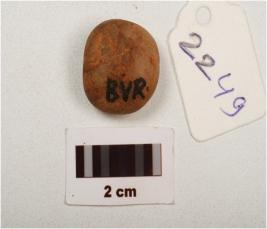 | Description / विवरण | An unmodified quartz pebble, smooth surface, |