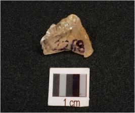 | Description / विवरण | A quartz flake with scars blade on the surface with ruged surface and transparent, |