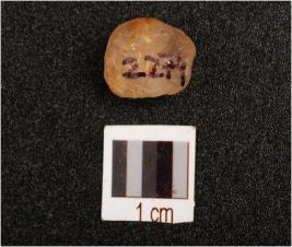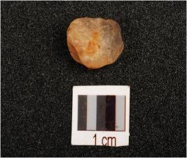 | Description / विवरण | A unmodified quartz pebble, with smooth surface one side and irregular shaped 3-4, flakes scars, |