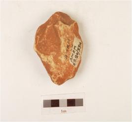 | Description / विवरण | A core made on quartzite side struck flake, unificial, flake scars on surface, use wear wavy edges, bi convex in section. |