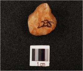 | Description / विवरण | A quartz core with prepared platform diffused bulb on ventral side, 3-4 flake scars use wear marks along cutting edges, |