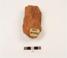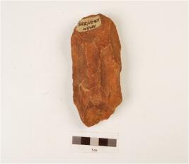 | Description / विवरण | A hand axe made on quartzite end struck flake, scars on both surface, wavy cutting edges, biconvex in section. |