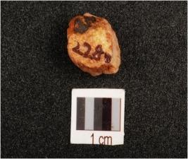 | Description / विवरण | An unmodified quartz pebble, uneven surface, |