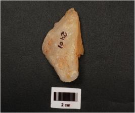 | Description / विवरण | A flake made on quartz stone, flake scars on surface, smooth surface, |