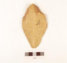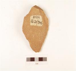 | Description / विवरण | A scraper made on quartzite end struck flake, prepared platform on proximal end, wavy cutting edges, ridge on dorsal surface, made on cortex, triangular in section. |