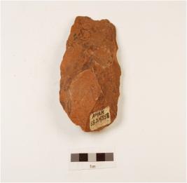 | Description / विवरण | A cleaver made on quartzite side struck flake, irregular cutting edges, flake marks on surface, plano convex in section. |