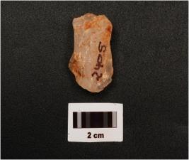 | Description / विवरण | A flake with use wear marks on working edge, flake scars on surface, |