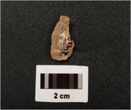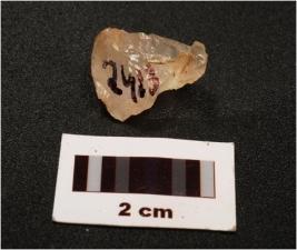 | Description / विवरण | A flake made on quartz stone, flake scars on surface, smooth surface, |