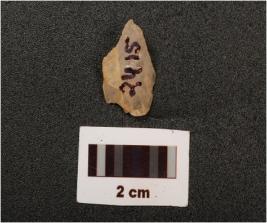 | Description / विवरण | A flake with use wear marks on working edge, flake scars on working edge, |