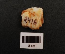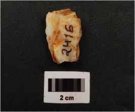 | Description / विवरण | Fragment of a flake made on quartz stone, flake scars on surface, diffused bulb on ventral surface, |