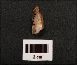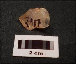 | Description / विवरण | A flake made on quartz stone, flake scars on surface, |
