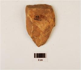 | Description / विवरण | A flake made on quartzite unificial, flake scars on surface, cutting edges, plano-convex in section. |