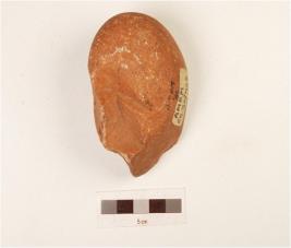 | Description / विवरण | A chopping made on quartzite pebble with flake scars on one side, cortex on dorsal side, butt end and use wear marks on working edge, biconvex in section. |